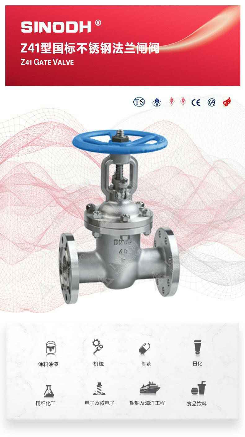 Z41型不锈钢闸阀,为开云在线登录app官网-开云(中国)自主研发生产。本产品是一种最常见的启闭阀,利用闸板的上下工作来接通(全开)和截断(全关)管道中的流体介质。此类闸阀广泛用于自来水、污水、建筑、石油、化工、食品、医药、轻纺、电力、船舶、冶金、能源系统等体管线上作为调节和截流装置使用。